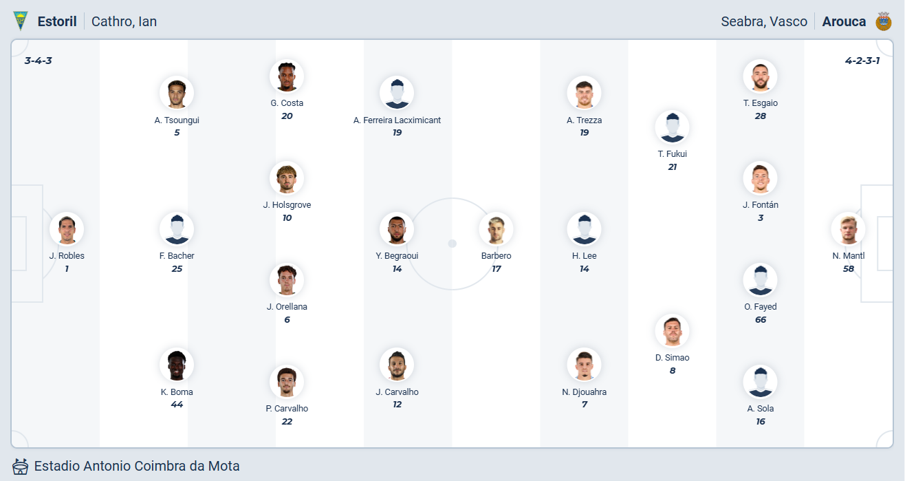 Arouca không phải đội bóng mạnh của Bồ Đào Nha, họ đứng thứ 12 mùa giải trước. Mùa bóng này thầy trò HLV Vasco Seabra đặt mục tiêu trụ hạng lên đầu trước khi nghĩ đến những điều xa hơn và thực tế cho thấy việc trụ hạng cũng sẽ không dễ khi họ không thắng 4 vòng gần nhất (3 trận thua) và tụt xuống thứ 16 trên bảng xếp hạng. Nếu không chơi tốt hơn thì họ sẽ thực sự phải chiến đấu để trụ hạng vào cuối mùa nên Arouca rất cần một kết quả tốt ở vòng đấu thứ 11 này. Tuy nhiên chuyến làm khách trên sân của Estoril tiếp tục là trận đấu khó khăn và khả năng Arouca sẽ không thể có điểm ra về.