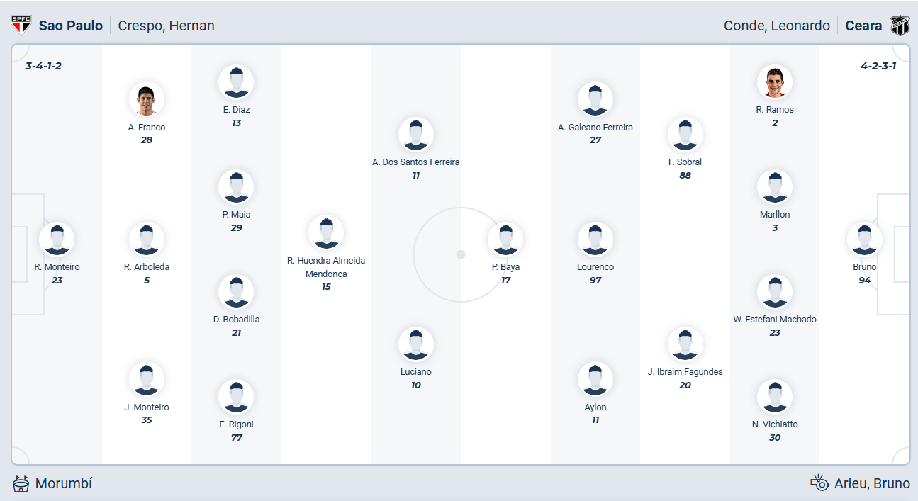 Sao Paulo là đội bóng giàu truyền thống của Brazil nhưng trong những năm gần đây họ không còn giữ được đẳng cấp hàng đầu của mình, vị trí thứ 6 mùa giải trước cho thấy điều đó. Các cầu thủ của HLV Hernán Crespo muốn làm tốt hơn ở mùa giải năm nay nhưng phong độ không ổn định khiến họ chưa thể có được thứ hạng tốt hơn. Việc để thua 2/3 vòng gần nhất là thành tích rất tệ nên các cầu thủ Sao Paulo rất cần chiến thắng ở vòng đấu sắp tới. Ceara không phải đối thủ yếu nhưng vừa sức với Sao Paulo, nếu chơi đúng với khả năng thì đội chủ nhà sẽ đạt được mục tiêu của mình.